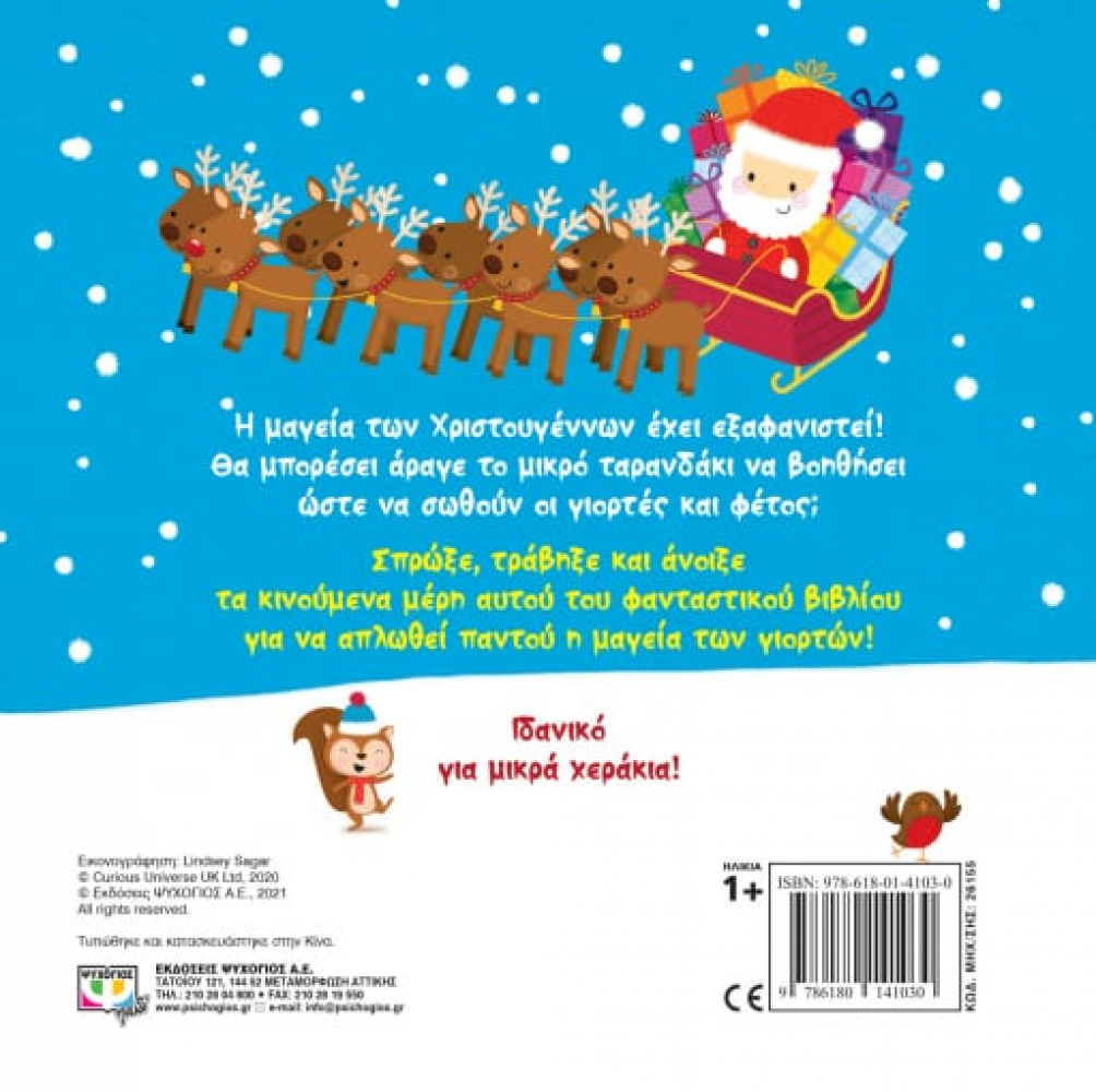 Σπρώξε, τράβηξε και άνοιξε τα κινούμενα μέρη αυτού του φανταστικού βιβλίου για να απλωθεί παντού η μαγεία των γιορτών!
