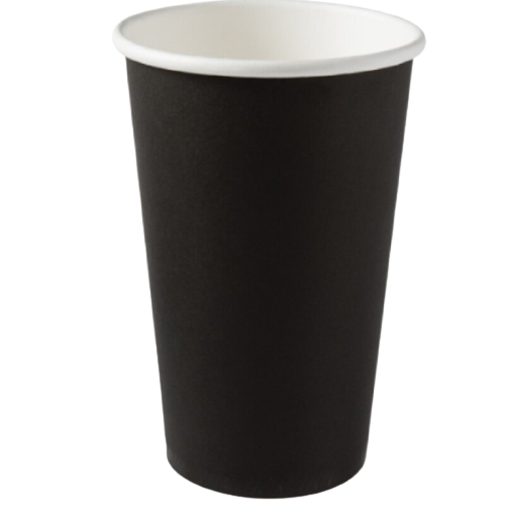 Ποτήρι μίας χρήσης, χάρτινο, μονού τοιχώματος, μαύρο από την εταιρεία Intertan. Είναι ένα οικονομικό ποτήρι, χωρητικότητας 16oz, κατάλληλο για ζεστά αλλά και κρύα ροφήματα.