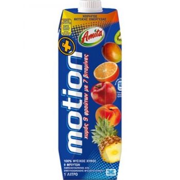 Η Amita Motion είναι ο πρώτος 100% φυσικός χυμός με 9 φρούτα και 7 βιταμίνες που ήρθε στην Ελληνική Αγορά και αποτελεί τον αγαπημένο χυμό των νέων, καθώς συνδυάζει τη διατροφική αξία με την ασύγκριτη απόλαυση και τη φυσική ενέργεια.
