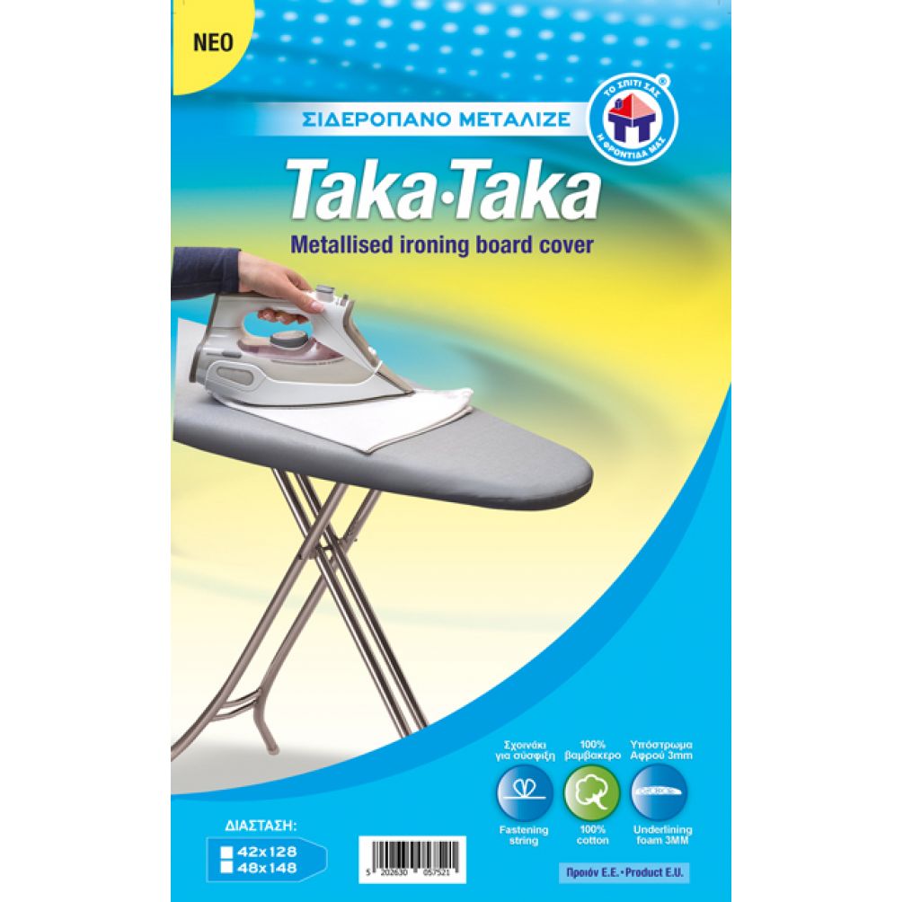 Σιδερόπανο μεταλιζέ 100% βαμβακερό με υπόστρωμα αφρού και κορδόνι για σύσφιξη επλανω στην σιδερώστρα 1.40*50cm