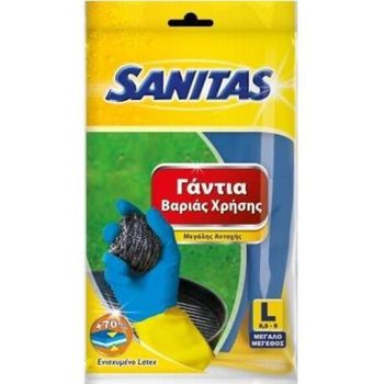 Τα Γάντια Βαριάς Χρήσης Sanitas (L), είναι φτιαγμένα από ενισχυμένο υλικό ειδικού πάχους και μεγάλης αντοχής ώστε να προστατεύουν τα χέρια σας ακόμα και στις πιο σκληρές δουλειές του κήπου ή του σπιτιού.