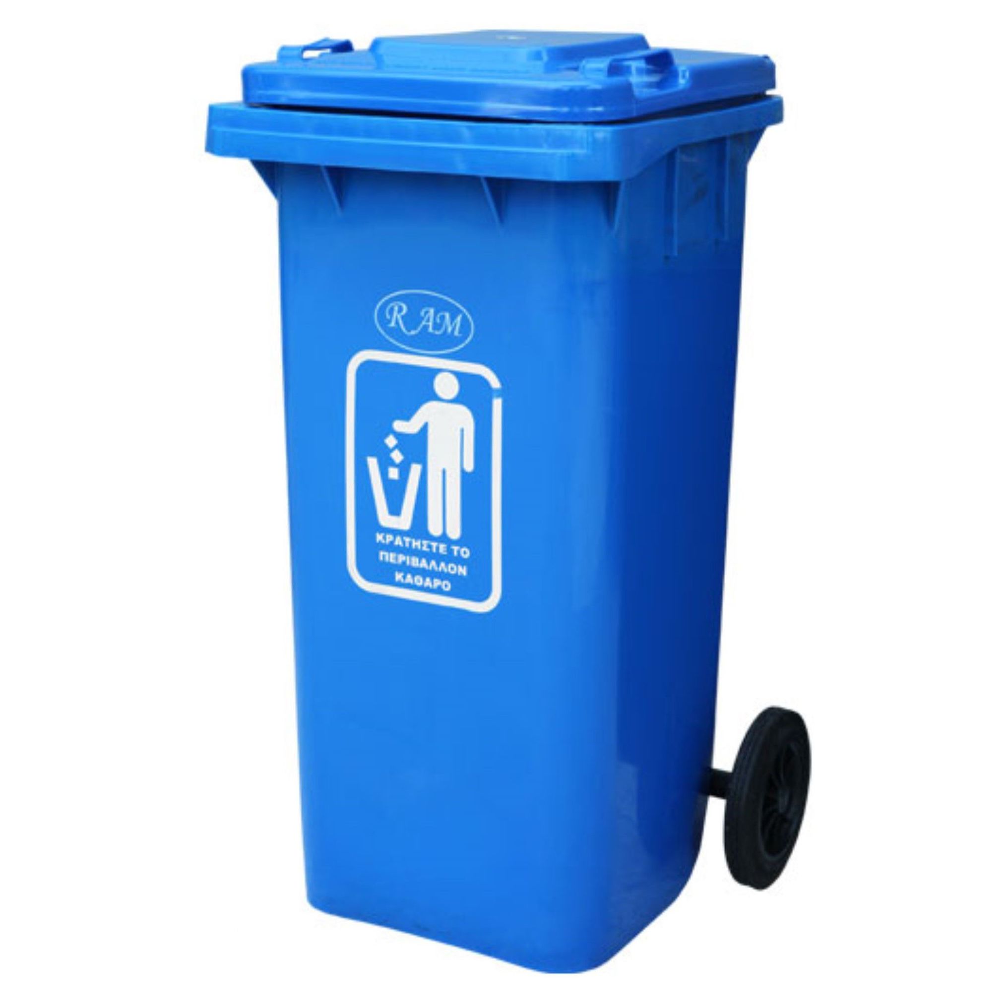 Πλαστικός κάδος σκουπιδιών, με καπάκι και ρόδες.
