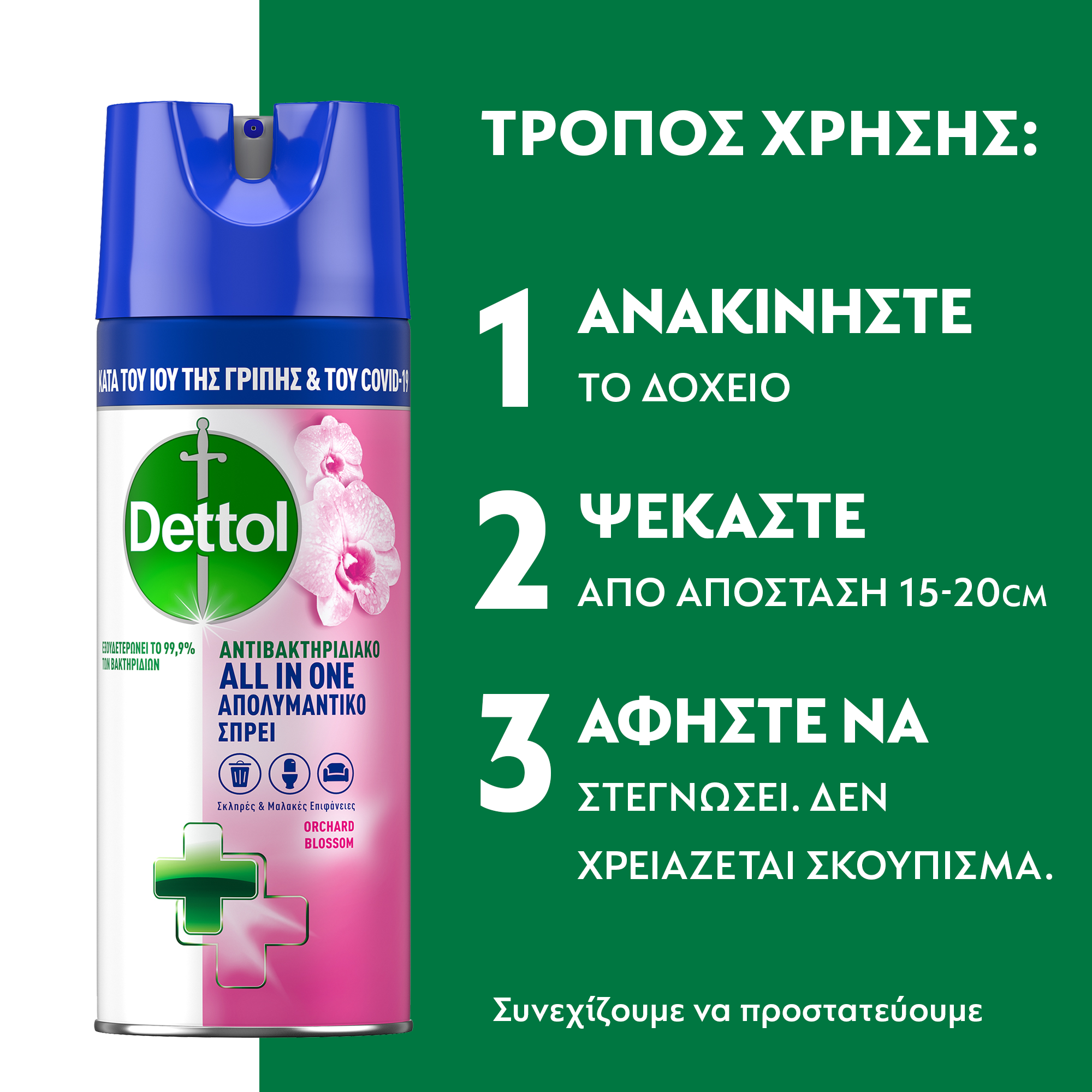 Οδηγίες Χρήσης: 1. Γυρίστε το κόκκινο ακροφύσιο στη θέση ON 2. Απλά ψεκάστε απευθείας στην επιφάνεια. 3. Σκουπίστε με ένα Καθαρό, νωπό πανί και ΑΦήστε να στεγνώσει. 4. Δε χρειάζεται ξέβγαλμα. 5. Για να καθαρίσετε ηλεκτρικό εξοπλισμό: ψεκάστε πρώτα σε ένα πανί πριν καθαρίσετε.