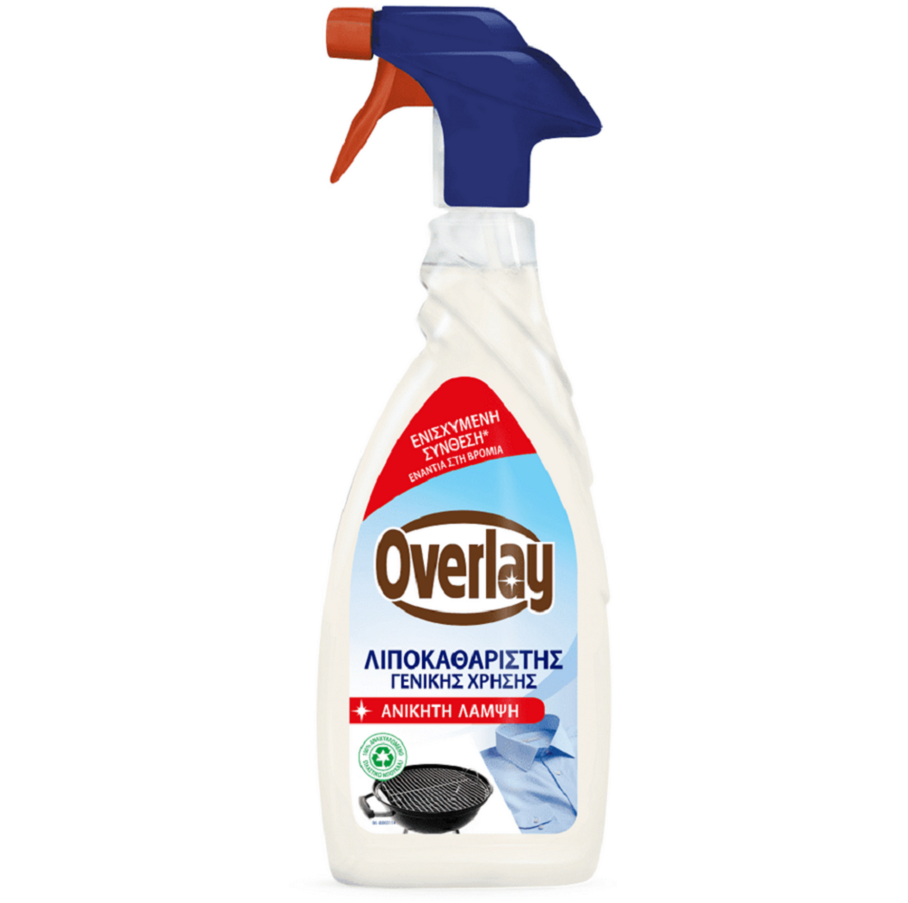 Ενισχυμένη Σύνθεση* Ενάντια στη βρομιά. Το Overlay Λιποκαθαριστής Γενικής Χρήσης χάρη στην τεχνολογία zero-halo και στο εύκολο ξέβγαλμα, εγγυάται ΑΝΙΚΗΤΗ ΛΑΜΨΗ όταν χρησιμοποιείται σύμφωνα με τις οδηγίες χρήσης και στεγνώματος.