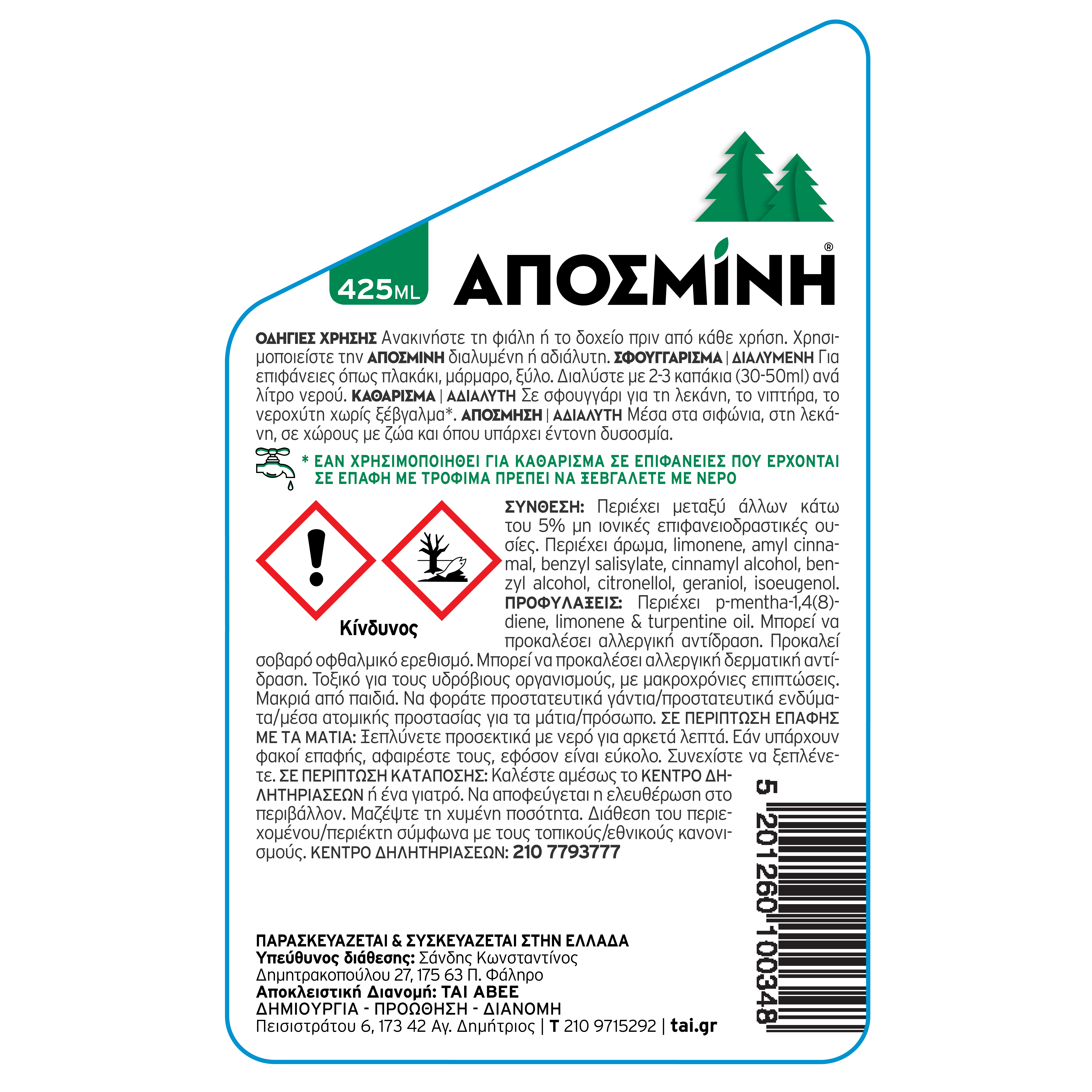 Υγρό Καθαριστικό Γενικής Χρήσης Αποσμίνη Tai 425ml