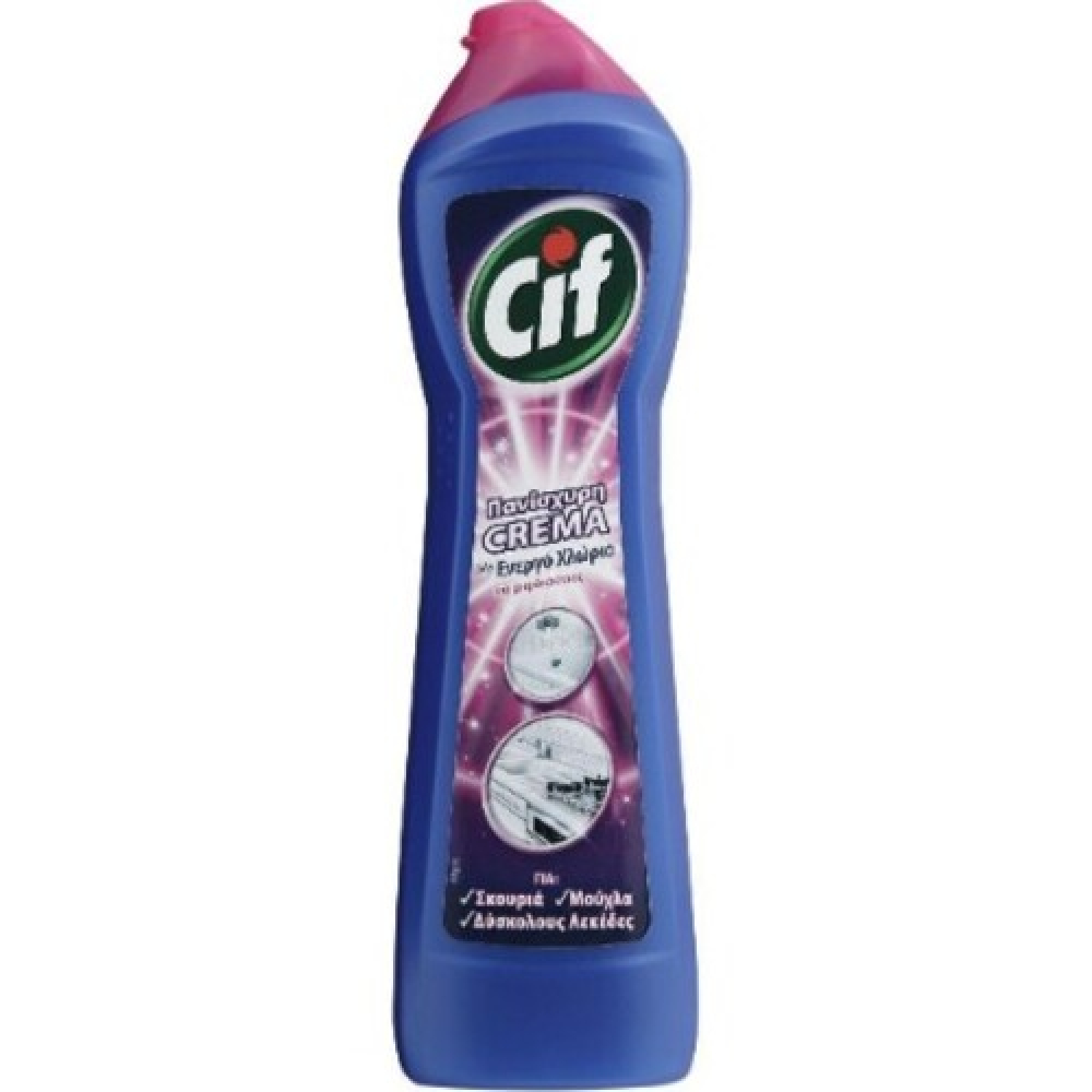 Η πανίσχυρη πολυκαθαριστική κρέμα Cif με Ενεργό Χλώριο δρα αποτελεσματικά σε όλα τα είδη σκληρής βρωμιάς.