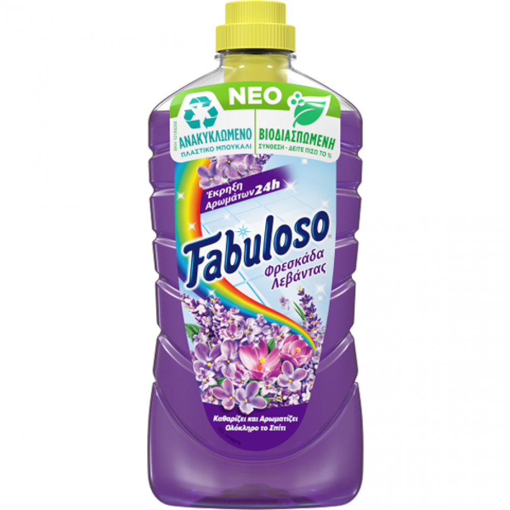 Το αρωματικό καθαριστικό Fabuloso απομακρύνει αποτελεσματικά τη βρωμιά και τους λιπαρούς λεκέδες, ενώ αρωματίζει ευχάριστα το σπίτι σας.