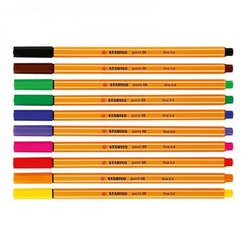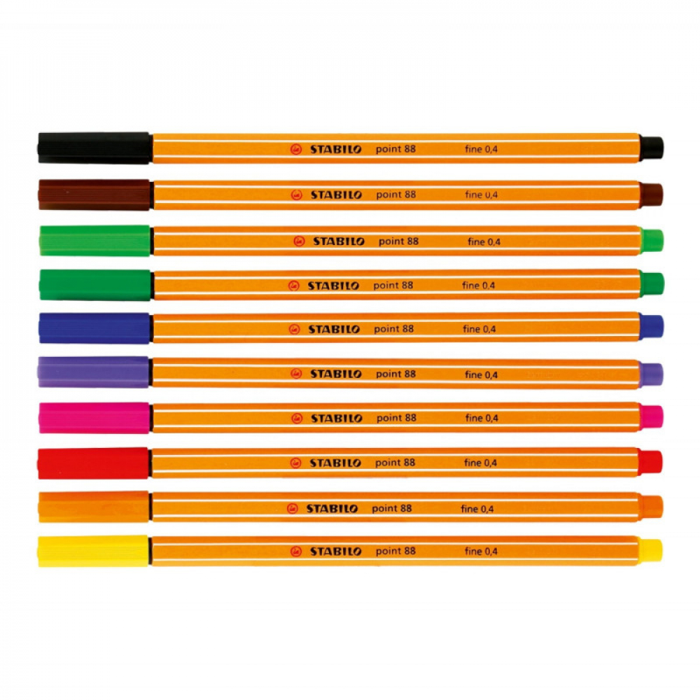 Το Stabilo Point 88, με το χαρακτηριστικό του εξάγωνο σχήμα, αποτελεί ένα από τα πλέον αναγνωρίσιμα μαρκαδοράκια. Με μοναδική μορφή και αξιοπιστία, το Point 88 διαθέτει μύτη πάχους 0,4mm fine με μεταλλικό περίβλημα και ψιλή γραφή, ενώ το μελάνι του έχει βάση το νερό. Λόγω του ιδιαίτερου σχεδιασμού του και των υλικών κατασκευής του είναι ιδανικό για σχέδιο αλλά και για γράψιμο, ενώ το ίδιο το μαρκαδοράκι μπορεί να χρησιμοποιηθεί και σαν χάρακας.