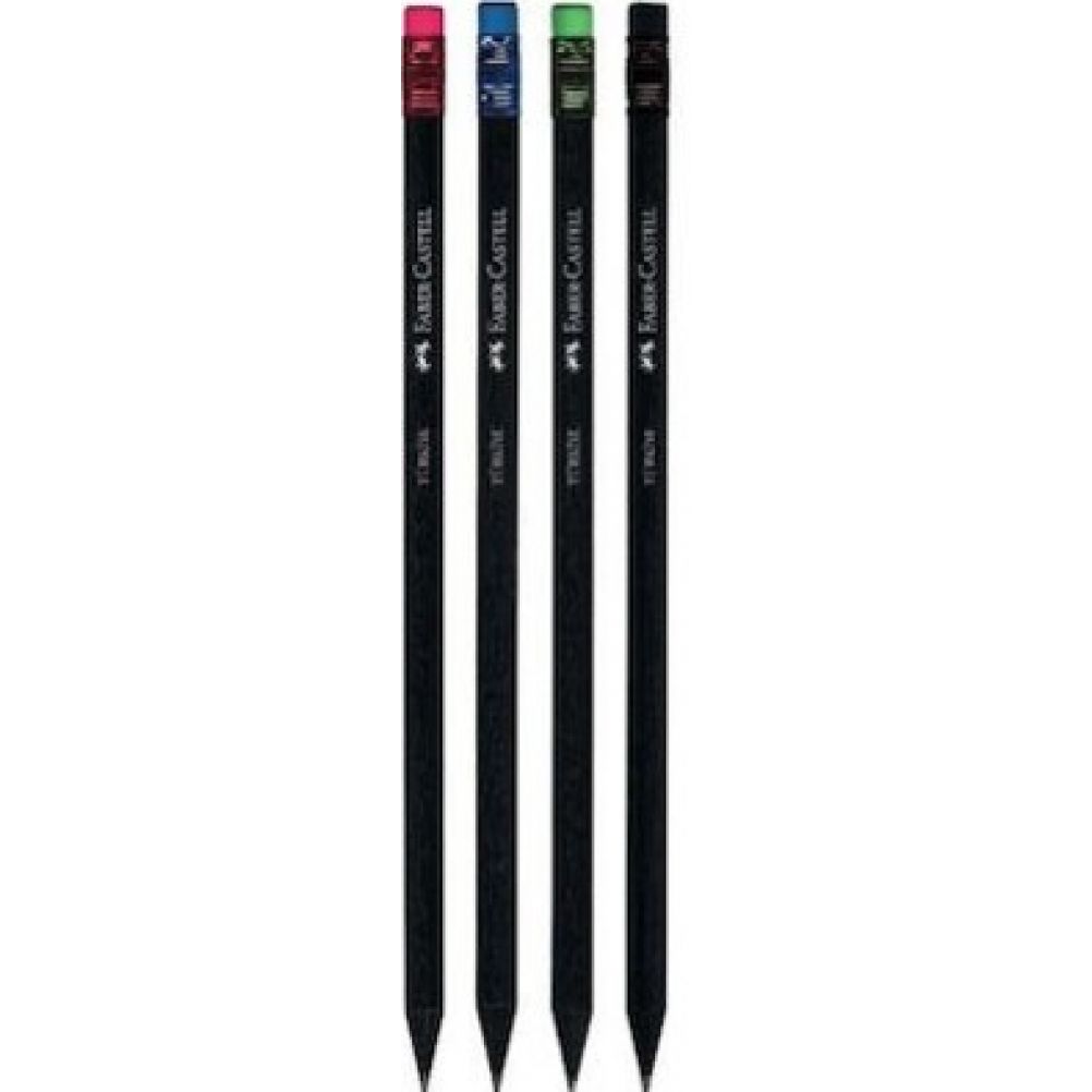 Μολύβι Faber Castell με ροζ γόμα σε μαύρο ξύλο.