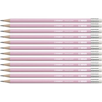 Ξύλινο μολύβι με γόμα από τη Stabilo. Εχει εξάγωνο σχήμα, λεία επιφάνεια και η μύτη του είναι απο γραφίτη, με σκληρότητα μαλακή, HB 2 1/2. Ιδανικό μολύβι για γράψιμο ή σχέδιο, για το σχολείο ή το γραφείο. Σε έξι όμορφα παστέλ χρώματα, πράσινο, κίτρινο, λιλά, βερικοκί, ροζ, μπλε, τα οποία δίνουν μία επιπλέον νότα κομψότητας στο μολύβι.