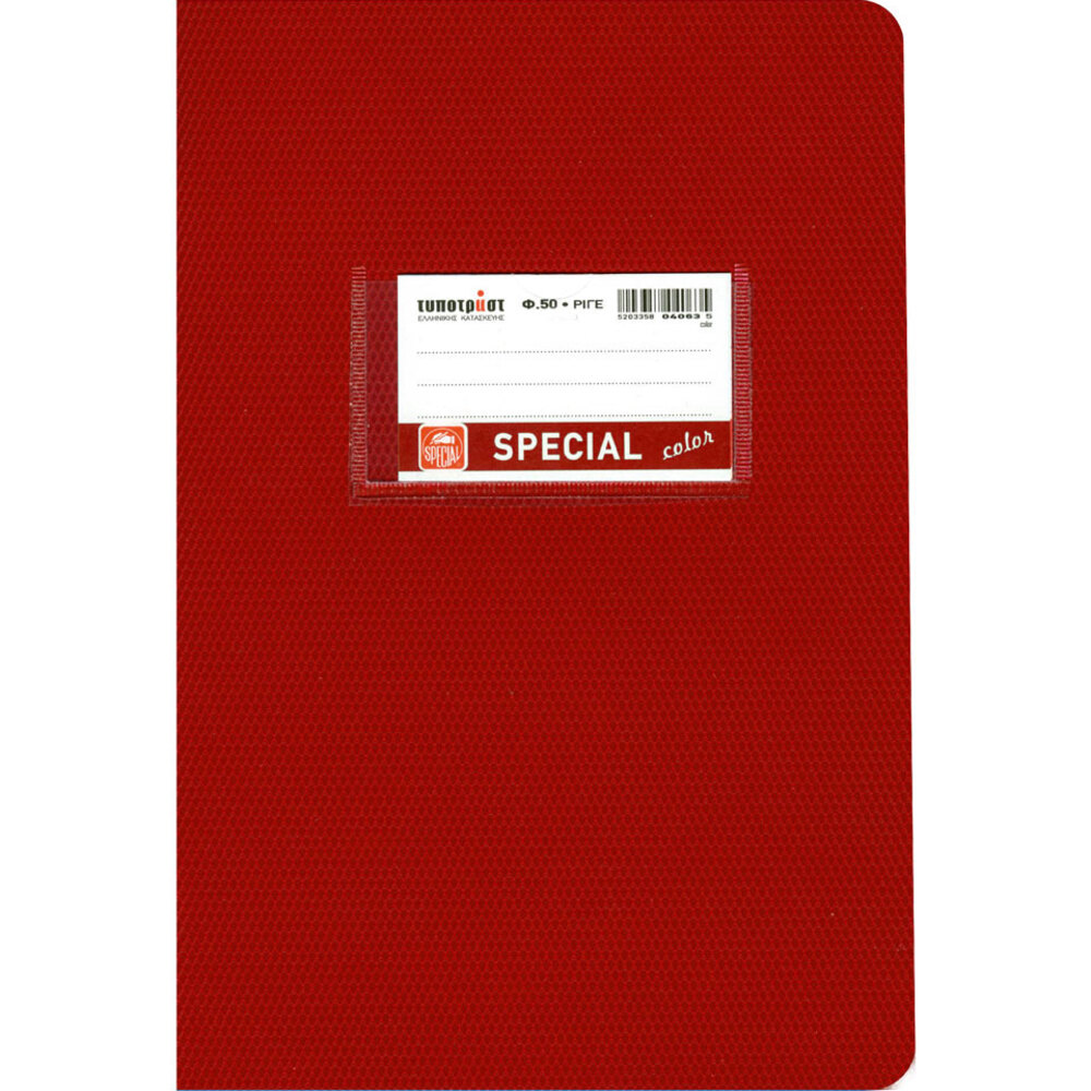Χρωματιστό Special Τετράδιο 50 φύλλων, διάστασης B5 (17x25) με πλαστικό εξώφυλλο.