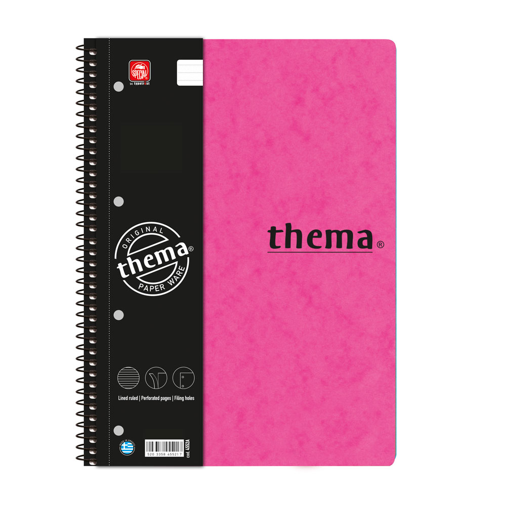 Θεματικά μονόχρωμα σπιράλ τετράδια σε διάφορα όμορφα χρώματα, με περφορέ και τρύπες για εύκολη αρχειοθέτηση.