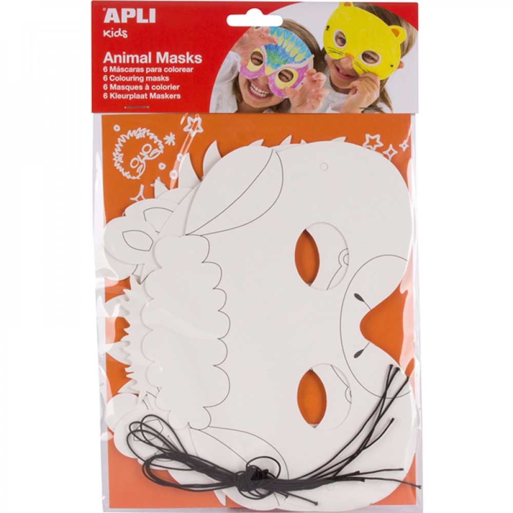 6 λευκές μάσκες διαφορετικών σχεδίων για να διακοσμήσεις με χρώματα ή αυτοκόλλητα.