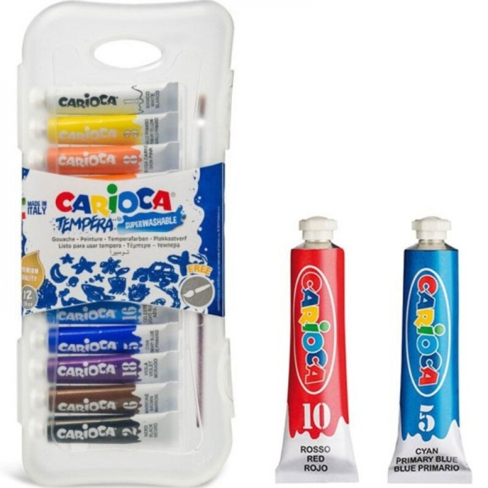 Με την εγγύηση ποιότητας της Carioca, 12 σωληνάρια με χρώμα τέμπερας, 7ml το καθένα.