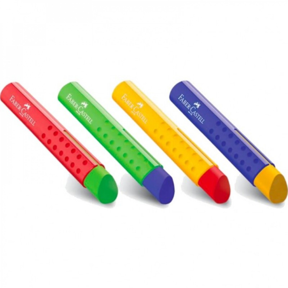 Τριγωνική γόμα χωρίς PVC. Με εργονομικό τριγωνικό προστατευτικό περίβλημα και φωτεινό συνδυασμό χρωμάτων. Κατάλληλη για μολύβια γραφίτη.