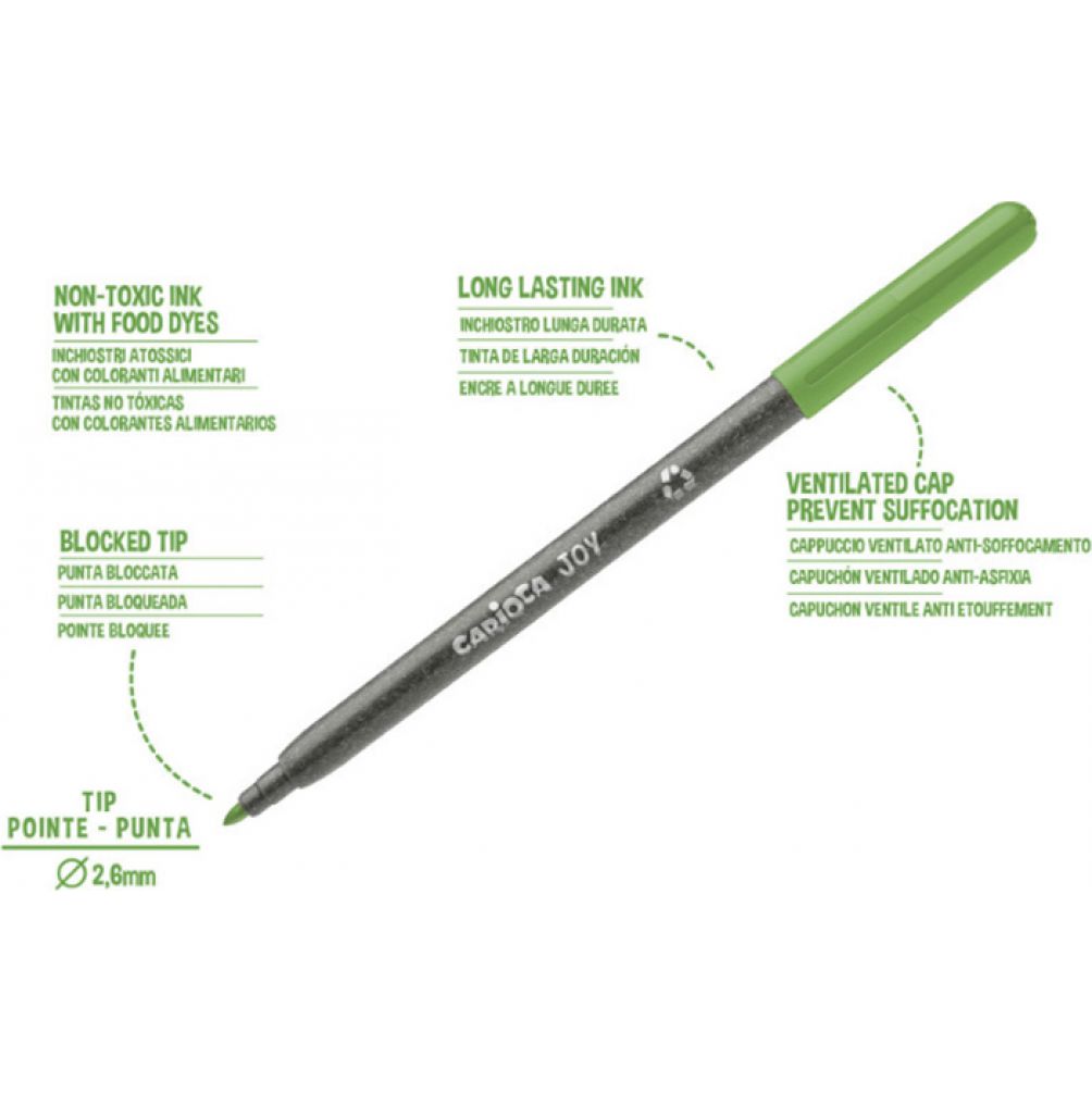 Πλενόμενοι μαρκαδόροι με λεπτή μύτη 2,8mm για γραφή ακριβείας. Σε οικολογική συσκευασία με 12 χρώματα. Κάθε μαρκαδόρος είναι κατασκευασμένος από 74% ανακυκλωμένο πλαστικό. Το κουτί είναι επίσης κατασκευασμένο από ανακυκλωμένο χαρτί.