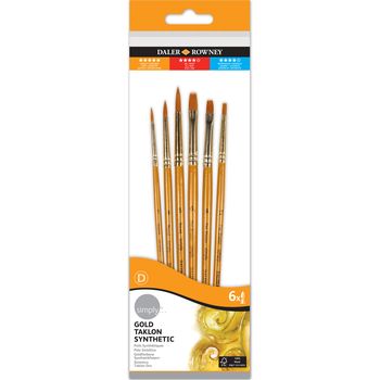 Σετ 6 πινέλων Daler Rowney Νο 1,2,3,4,5,6 με κοντή ξύλινη λαβή και συνθετική τρίχα από το υλικό Golden Taklon το οποίο εξασφαλίζει ποιοτικό αποτέλεσμα όμοιο των καλύτερων πινέλων φυσικής τρίχας.