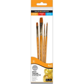 Σετ 4 πινέλων Daler Rowney με κοντή ξύλινη λαβή και συνθετική τρίχα από το υλικό Golden Taklon το οποίο εξασφαλίζει ποιοτικό αποτέλεσμα όμοιο των καλύτερων πινέλων φυσικής τρίχας.