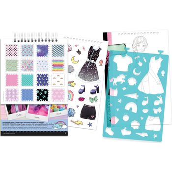 Το σετ περιέχει: στένσιλ, αυτοκόλλητα, οδηγό για έμπνευση και σχεδίαση (14 σελ.), 30 σελίδες σχεδίασης.
