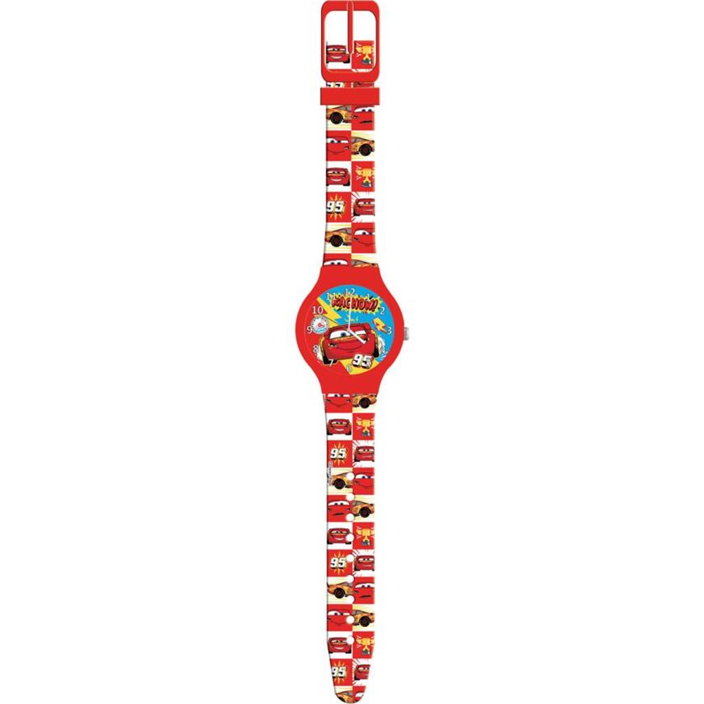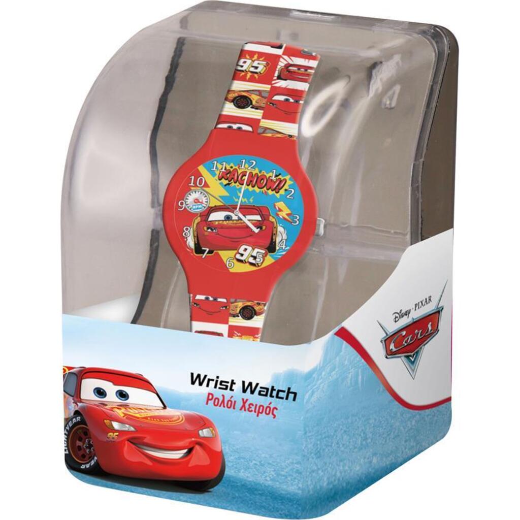 Αναλογικό ρολόι κόκκινο σε πλαστικό κουτί και καντράν με σχέδιο Cars