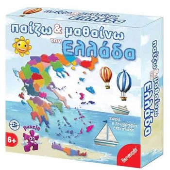 Περιλαμβάνει ταμπλό 35 χ 50 με τα σύνορα της χώρας μας και 52 κομμάτια παζλ με τους νομούς που πρέπει να μπουν στη σωστή θέση για να ολοκληρωθεί ο χάρτης της Ελλάδας.