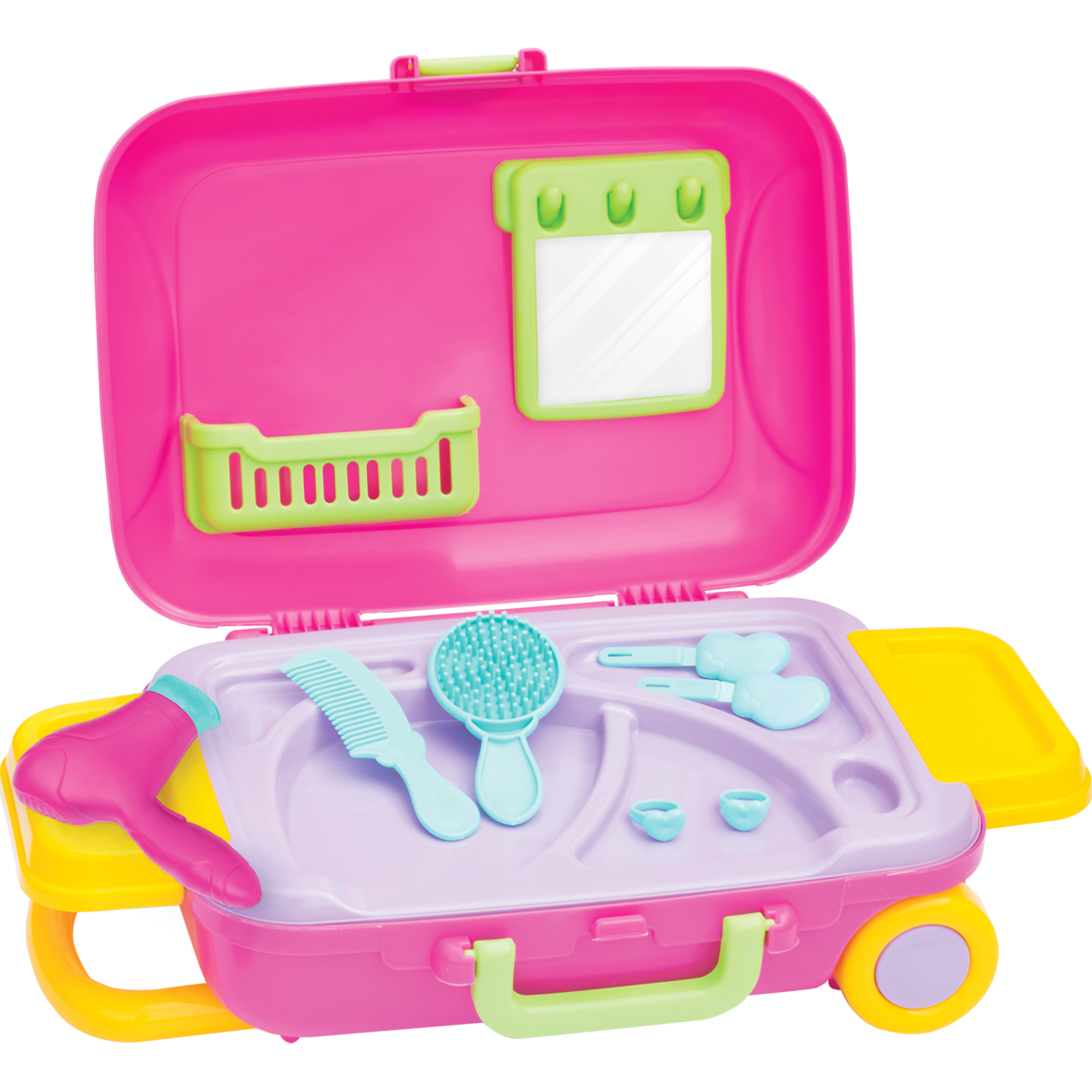 Περιλαμβάνει πιστολάκι για τα μαλλιά, χτένα μαλλιών, βούρτσα, δαχτυλίδια και κοκαλάκια μαλλιών.