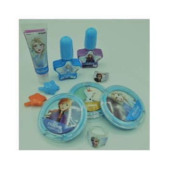 Περιλαμβάνει 1x beauty bag, 2x nail polish in different colors, 6x creamy eyeshadows, 1 lip gloss tube, 2 rings and 1 jar with three different lip glosses.