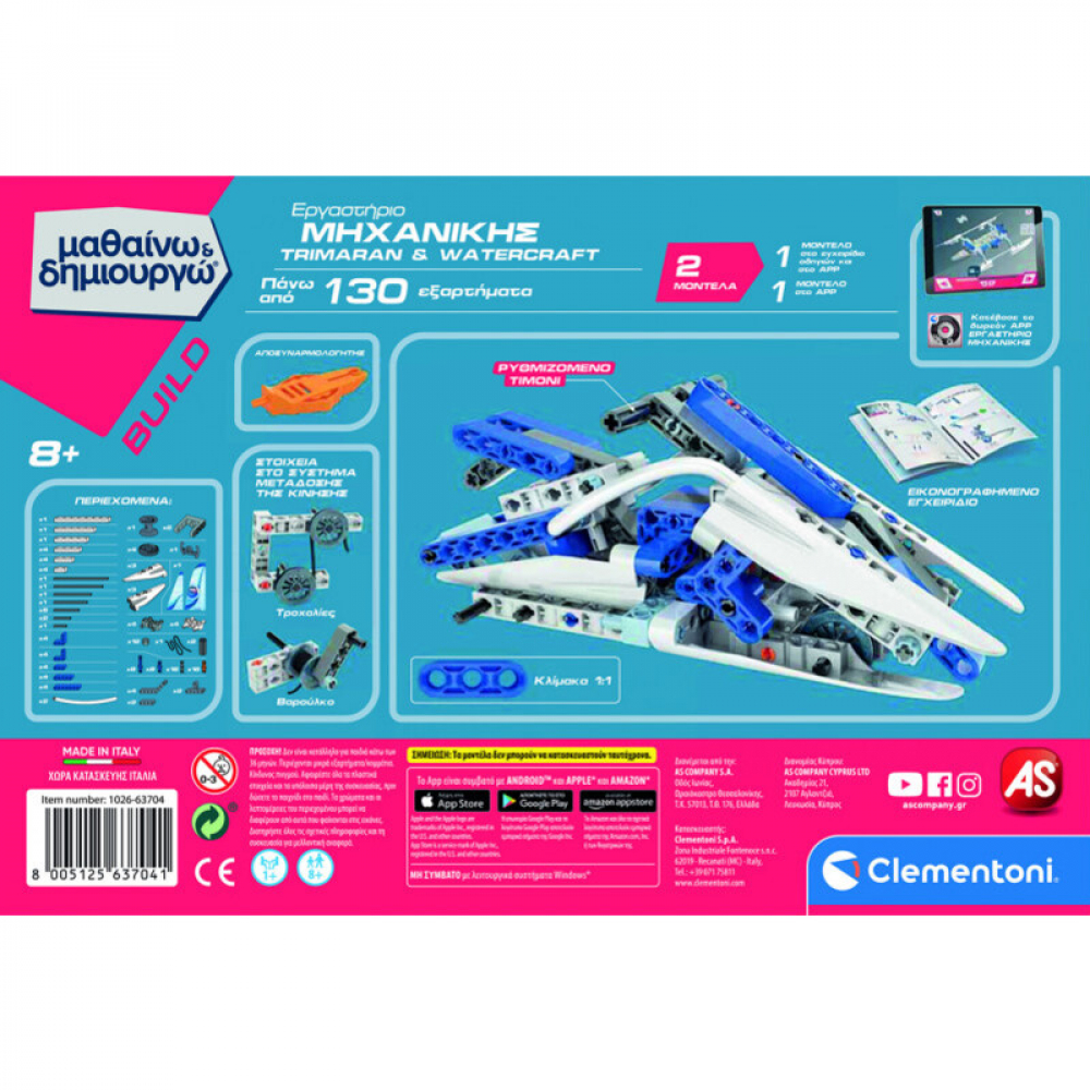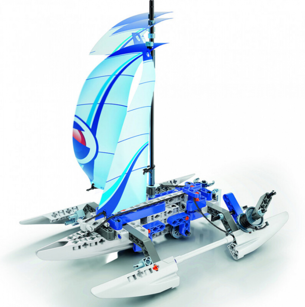 Πάνω από 130 εξαρτήματα με ράβδους, τροχαλίες, πάνελ και πολλά ακόμη, για πραγματική διασκέδαση κατασκευάζοντας 2 πραγματικά μοντέλα: ένα ιστιοπλοϊκό τριμαράν με ρυθμιζόμενα πανιά και τιμόνι που κινούνται και ένα φανταστικό watercraft.