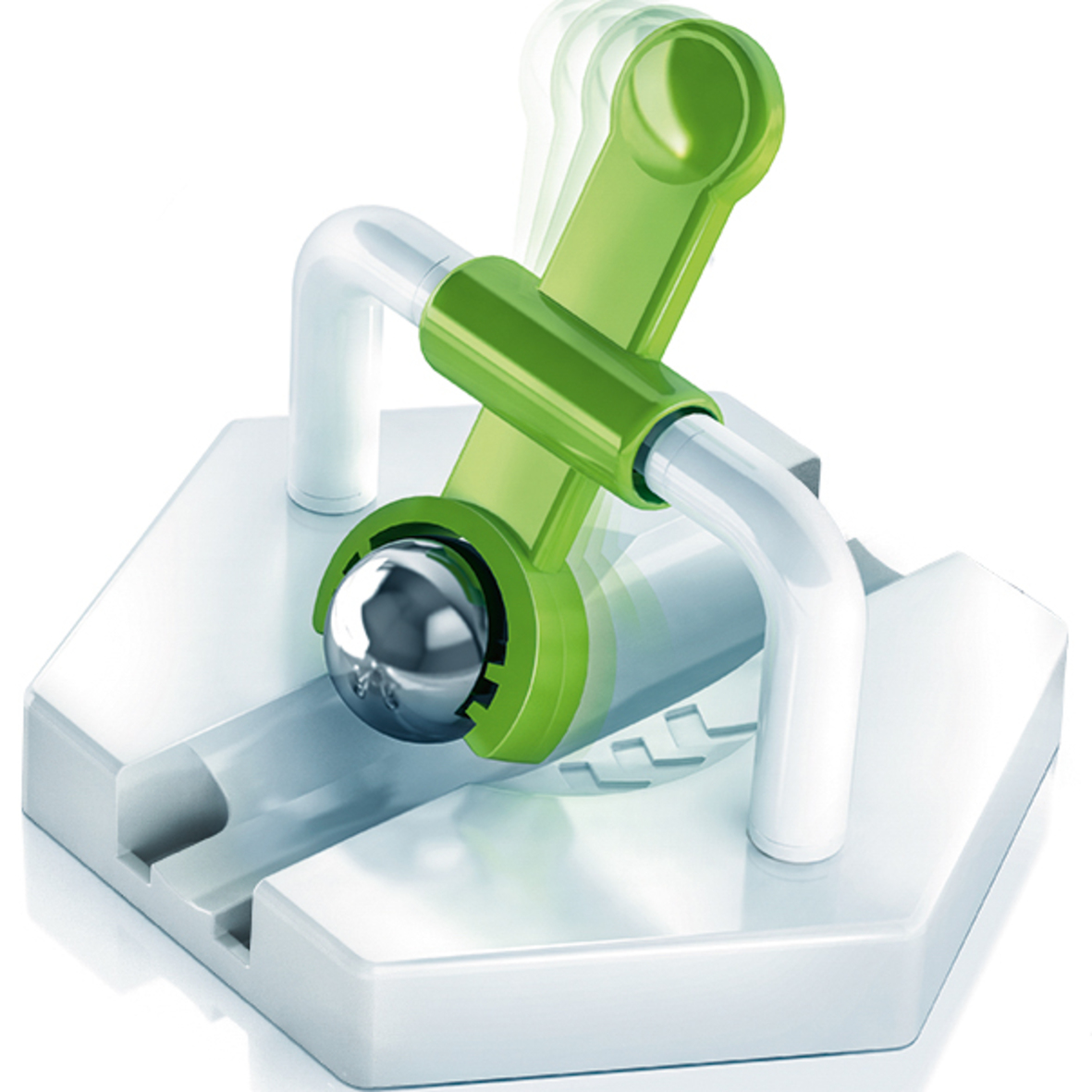 Δώστε περισσότερη ορμή στη μπίλια σας προσθέτοντας το Σφυρί. Όταν ενεργοποιείται, το σφυρί ταλαντεύεται και χτυπά τη μπίλια, δίνοντάς της περισσότερη δύναμη και επιτρέποντάς της να ταξιδέψει ακόμα πιο μακριά. Παίζεται μόνο με το GraviTrax Starter-Set