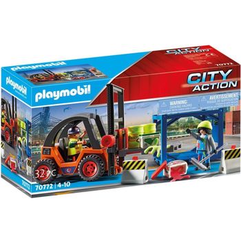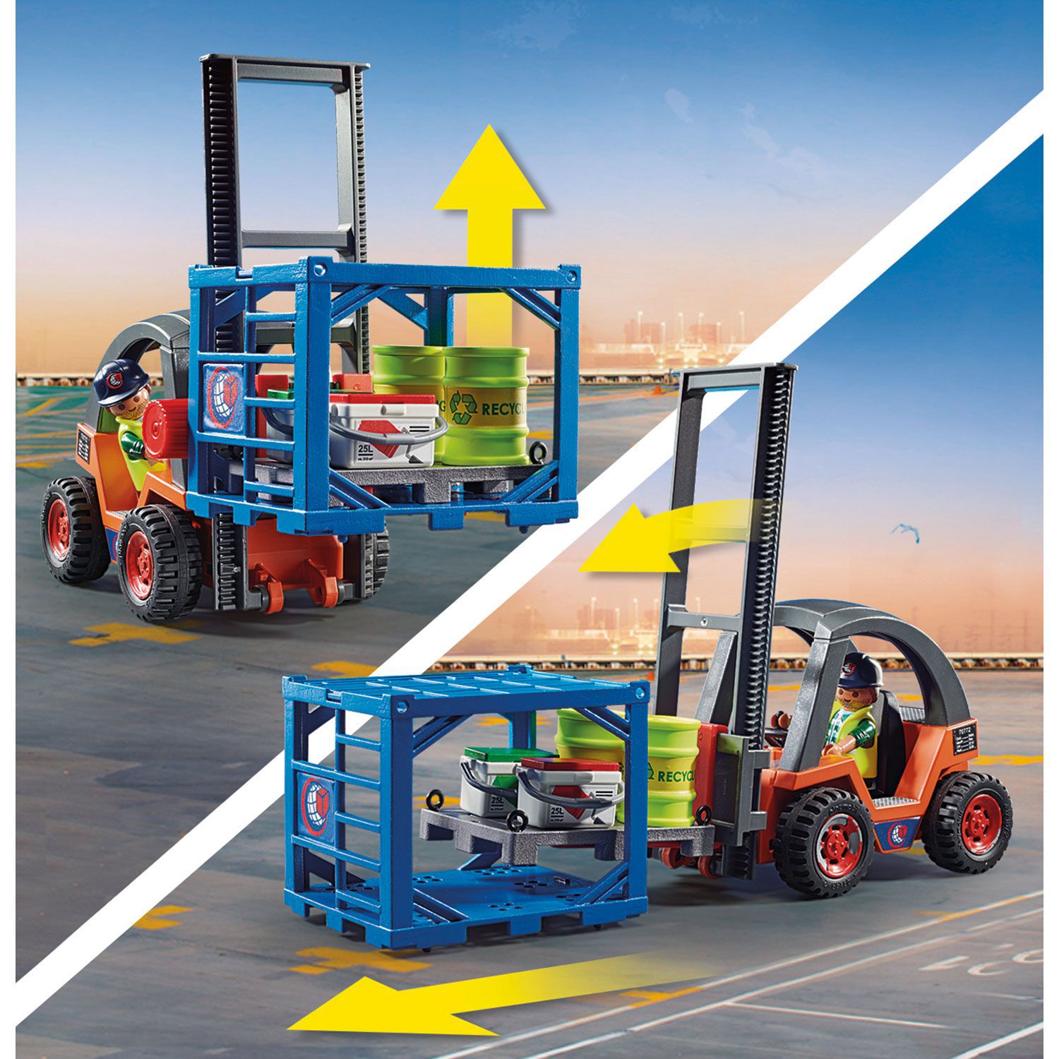 Playmobil Κλαρκ Εμπορευμάτων (70772) με λειτουργία ανύψωσης, ""σκελετό"" container και παλέτα βαρέους τύπου. Περιλ. 2 ίχνη χρώματος από σιλικόνη και πολλά αξεσουάρ.