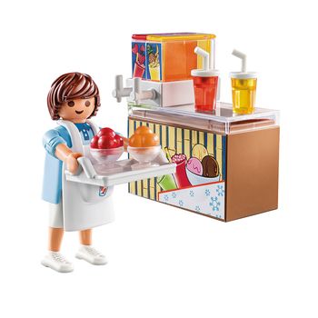 Παγωτατζής με πάγκο σερβιρίσματος παγωτού.