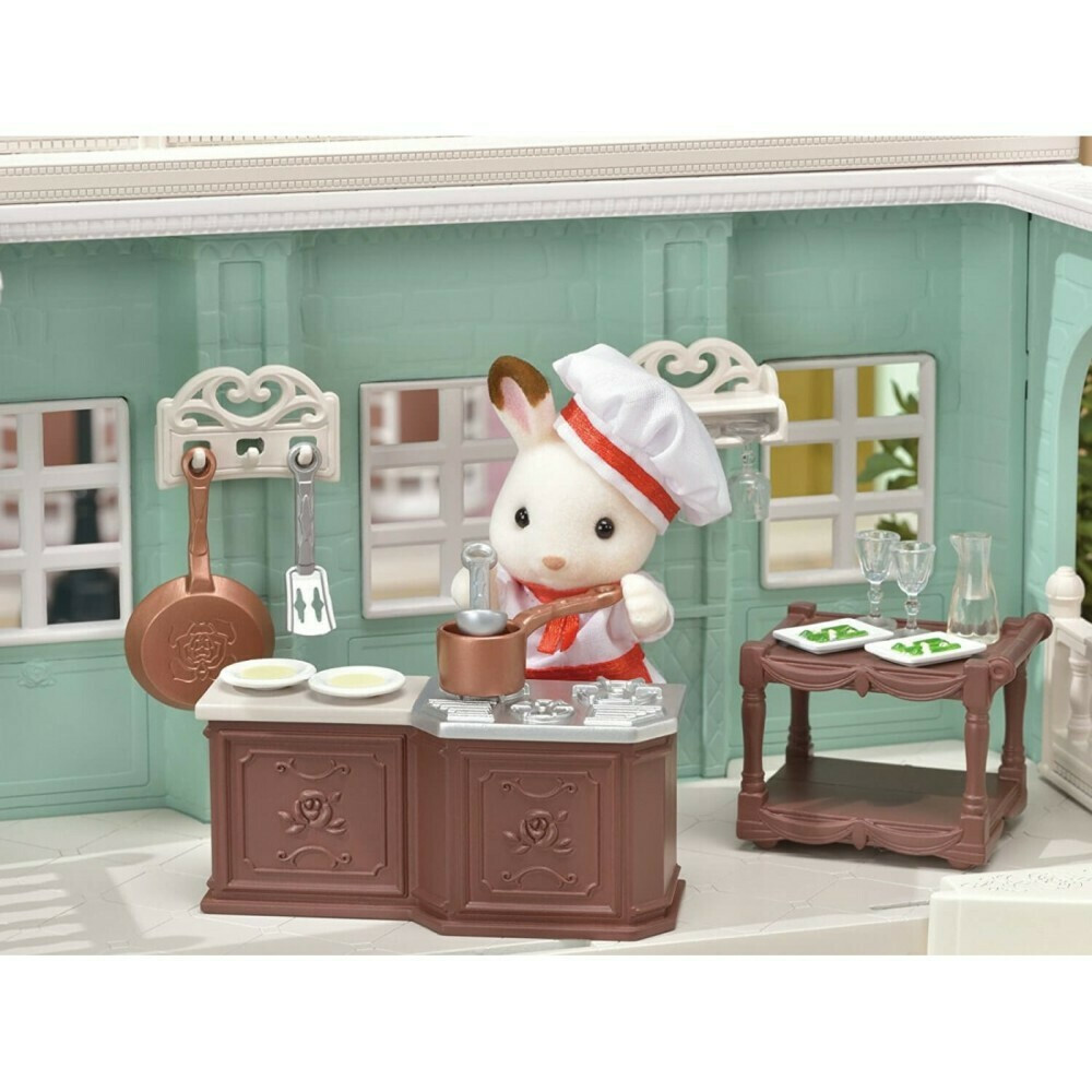Το Delicious Restaurant προσφέρει το καλύτερο φαγητό στην πόλη. Ο πατέρας Chocolate Rabbit είναι ο σεφ. Τοποθετήστε τους φράκτες, τους διαδρόμους, τη σκάλα και τις μαρκίζες όπως επιθυμείτε, για να φτιάξετε το δικό σας εστιατόριο. Το σετ περιλαμβάνει όλα όσα χρειάζεστε για ένα εστιατόριο: κουζίνα, μαγειρικά σκεύη, τραπέζι και καρέκλες, καρότσι, επιτραπέζια σκεύη, ακόμα και τη στολή ενός σεφ. Η υπέροχη τούρτα τριών επιπέδων είναι τέλεια για πάρτι.Μπορείτε να δημιουργήσετε τη δική σας πόλη συνδυάζοντας αυτό το προϊόν με άλλα κτήρια της σειράς Town, όπως το Grand Department Store, το Designer Studio και το Creamy Gelato Shop. Μπορείτε επίσης να προσαρμόσετε το κτήριο στο δικό σας γούστο αντικαθιστώντας τα παράθυρα, τους φράκτες και τις μαρκίζες που περιλαμβάνονται στη συσκευασία μαζί με το κτήριο (όλα πωλούνται χωριστά).