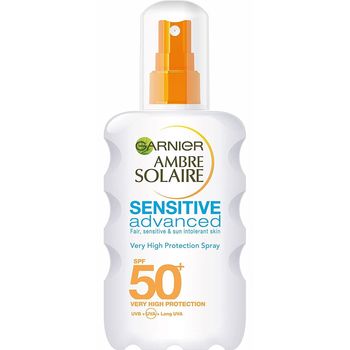 Sensitive Advanced Spray, Υψηλής Αντηλιακής Προστασίας SPF50+ Ambre Solaire Garnier (200ml) Υπερασπίζεται αποτελεσματικά την επιδερμίδα σας από τις βλαβερές συνέπειες του ήλιου.