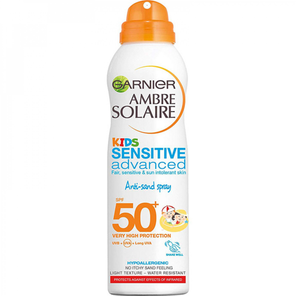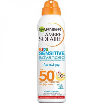 Anti-Sand Spray Υψηλής Αντηλιακής Προστασίας για Παιδιά, SPF50 Ambre Solaire Garnier (200ml) KIDS Anti-Sand Spray SPF50, για πολύ υψηλή παιδική αντηλιακή προστασία.