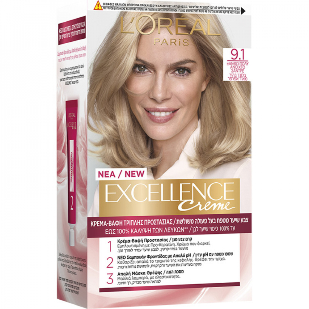 Βαφή Μαλλιών Excellence Creme No 9.1 Ξανθό Πολύ Ανοιχτό Σαντρέ L'Oreal 48ml