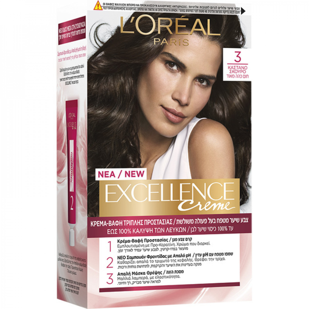 Βαφή Μαλλιών Excellence Creme No.3 Καστανό Σκούρο L'Oreal 48ml-4€