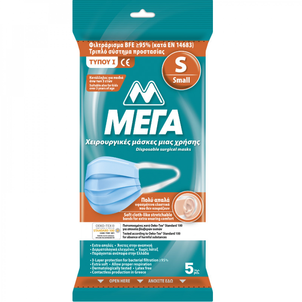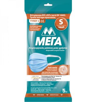 Μάσκες Προστασίας μιας Χρήσης Χειρουργικές S ΜΕΓΑ (Συσ./5τεμ)