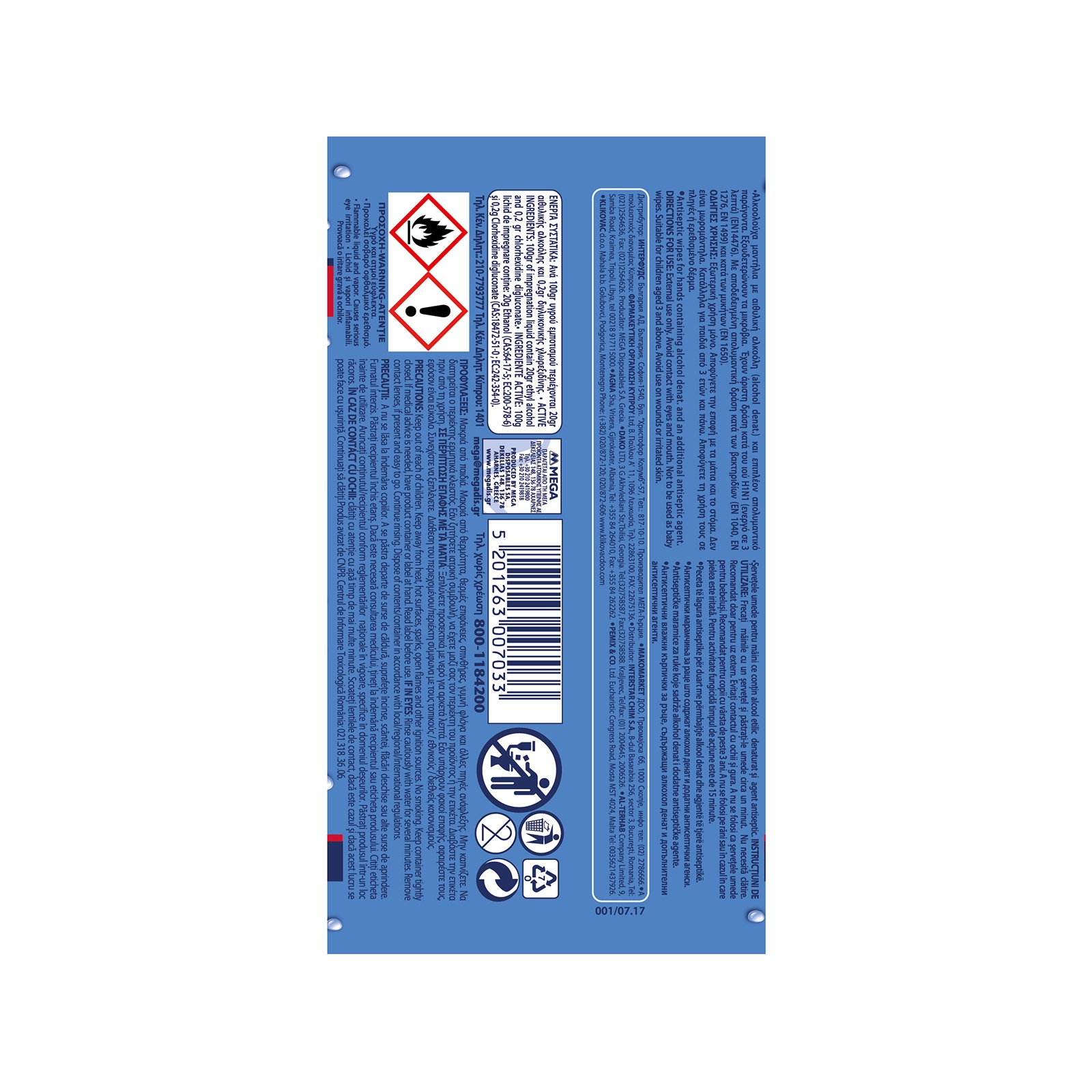 Υγρά αντιβακτηριδιακά μαντήλια με οινόπνευμα και επιπλέον αντιβακτηριδιακούς παράγοντες.