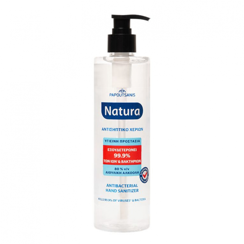 Νέο αντισηπτικό gel χεριών Natura 500ml με αντλία , εγκεκριμένο από τον ΕΟΦ και με σύνθεση σύμφωνα με τον Παγκόσμιο Οργανισμό Υγείας.