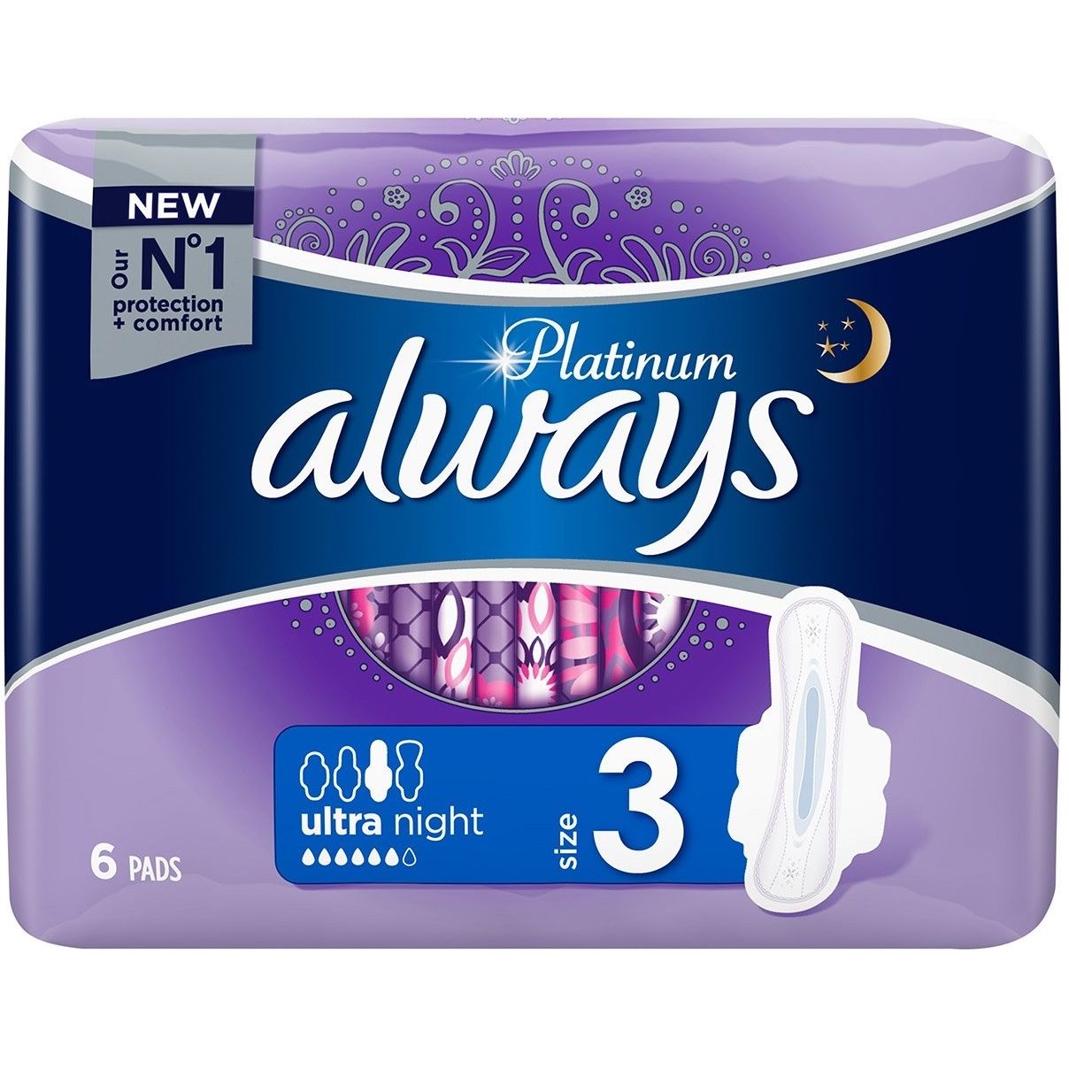 Οι Always Platinum Night (μέγεθος 3) με φτερά, προτείνονται για νυχτερινή χρήση ή για χρήση την ημέρα, σε περίπτωση μεγάλης ροής.