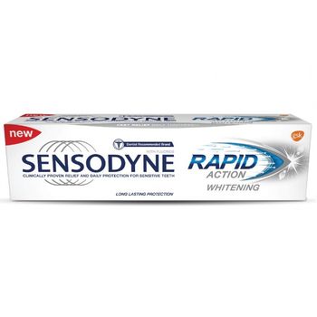 Η Sensodyne Rapid Action Whitening είναι μια εξειδικευμένη οδοντόκρεμα καθημερινής χρήσης, που είναι κλινικά αποδεδειγμένο ότι προσφέρει γρήγορη ανακούφιση –δρα σε μόλις 60 δευτερόλεπτα- και προστασία μεγάλης διάρκειας από τον πόνο των ευαίσθητων δοντιών.