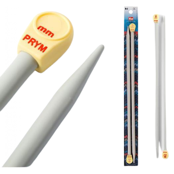 Βελόνες PRYM σε γκρι χρώμα για πλέξιμο στο χέρι μαλλιού ή βαμβακερού νήματος. Η συσκευασία περιέχει δύο (2) πλαστικές βελόνες.