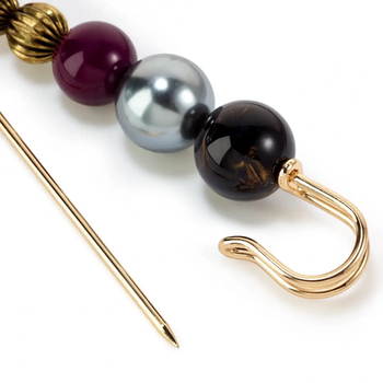 Σκωτσέζικη παραμάνα με διακοσμητικό στοιχείο από χάνδρες, κατασκευασμένη από ανοιξείδωτο ατσάλι και πλαστικό, σε χρώμα χρυσαφί και μαύρο, ασημί, μπορντώ και μήκος 8 εκατοστά.