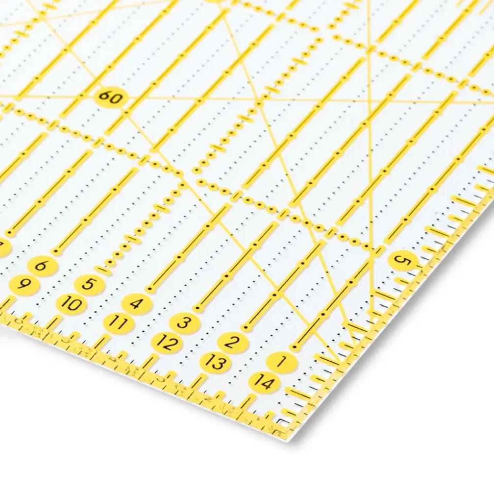 Τιμή τεμαχίου: 30.38 €Blank page Διάφανος χάρακας διάστασης 15Χ60 εκατοστών κατασκευασμένος από ανθεκτικά υλικά ώστε να μη χαράσσεται από τον κόφτη. Ιδιαίτερα σταθερός πάνω στο ύφασμα, με σημάδια για γωνίες 30, 45 και 60 μοιρών για να τραβάτε εύκολα διαγωνίους και να κόβετε τρίγωνα, ρόμβους και εξάγωνα και σημάδια τόσο ανά εκατοστό όσο και ανά 5 εκατοστά.