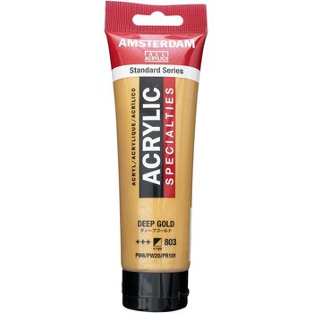 Τιμή λίτρου: 29.167 €Blank page Ακρυλικό χρώμα Deep Gold 803 της σειράς Amsterdam All Acrylics Specialties Standard Series σε συσκευασία των 120ml. Τα χρώματα Amsterdam Standard Series είναι εξαιρετικής ποιότητας ακρυλικά χρώματα με την εγγύηση της Ολλανδικής Royal Talens. Φτιαγμένα με υψηλής ποιότητας, ανθεκτικές στο φως χρωστικές, εχουν βαθμολογία αντοχής στο φως +++ (100+ χρόνια υπό συνθήκες μουσείου). Η σειρά Standard σας προσφέρει μία ευρεία γκάμα από εξαιρετικά ζωντανά αδιαφανή ακρυλικά χρώματα, εύκολα στη χρήση, τα οποία προσφέρουν ομαλή εφαρμογή. Χρησιμοποιήστε το χρώμα απευθείας από το σωλήνα ή αραιωμένο με λίγο νερό ή ένα από τα διαλυτικά για ακρυλικά χρώματα. Είναι κατασκευασμένα με 100% συνδετικό ακρυλικής ρητίνης, με αποτέλεσμα μια εξαιρετικά ανθεκτική και εύκαμπτη μεμβράνη βαφής με ομοιόμορφο βαθμό γυαλάδας. Άοσμη φόρμουλα με βάση το νερό η οποία γίνεται αδιάβροχη και με μέγάλη αντοχή όταν στεγνώσει. Προσκολλάται σχεδόν σε οποιαδήποτε ελαφρώς πορώδη επιφάνεια, συμπεριλαμβανομένου καμβά, χαρτιού, χαρτονιού, ξύλου, πέτρας και τσιμέντου.