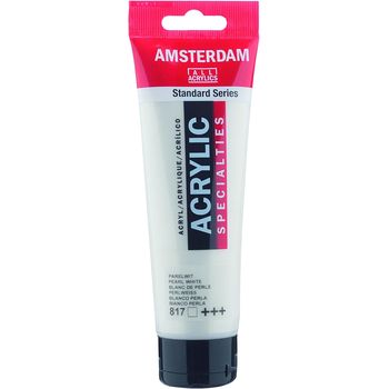 Τιμή λίτρου: 29.167 €Blank page Ακρυλικό χρώμα Pearl White 817 της σειράς Amsterdam All Acrylics Specialties Standard Series σε συσκευασία των 120ml. Τα χρώματα Amsterdam Standard Series είναι εξαιρετικής ποιότητας ακρυλικά χρώματα με την εγγύηση της Ολλανδικής Royal Talens. Φτιαγμένα με υψηλής ποιότητας, ανθεκτικές στο φως χρωστικές, εχουν βαθμολογία αντοχής στο φως +++ (100+ χρόνια υπό συνθήκες μουσείου). Η σειρά Standard σας προσφέρει μία ευρεία γκάμα από εξαιρετικά ζωντανά αδιαφανή ακρυλικά χρώματα, εύκολα στη χρήση, τα οποία προσφέρουν ομαλή εφαρμογή. Χρησιμοποιήστε το χρώμα απευθείας από το σωλήνα ή αραιωμένο με λίγο νερό ή ένα από τα διαλυτικά για ακρυλικά χρώματα. Είναι κατασκευασμένα με 100% συνδετικό ακρυλικής ρητίνης, με αποτέλεσμα μια εξαιρετικά ανθεκτική και εύκαμπτη μεμβράνη βαφής με ομοιόμορφο βαθμό γυαλάδας. Άοσμη φόρμουλα με βάση το νερό η οποία γίνεται αδιάβροχη και με μέγάλη αντοχή όταν στεγνώσει. Προσκολλάται σχεδόν σε οποιαδήποτε ελαφρώς πορώδη επιφάνεια, συμπεριλαμβανομένου καμβά, χαρτιού, χαρτονιού, ξύλου, πέτρας και τσιμέντου.