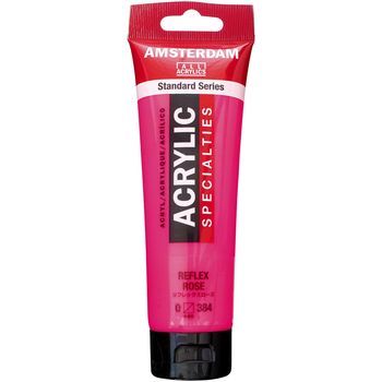 Τιμή λίτρου: 29.167 €Blank page Ακρυλικό χρώμα Reflex Rose 384 της σειράς Amsterdam All Acrylics Specialties Standard Series σε συσκευασία των 120ml. Τα χρώματα Amsterdam Standard Series είναι εξαιρετικής ποιότητας ακρυλικά χρώματα με την εγγύηση της Ολλανδικής Royal Talens. Φτιαγμένα με υψηλής ποιότητας, ανθεκτικές στο φως χρωστικές, εχουν βαθμολογία αντοχής στο φως +++ (100+ χρόνια υπό συνθήκες μουσείου). Η σειρά Standard σας προσφέρει μία ευρεία γκάμα από εξαιρετικά ζωντανά αδιαφανή ακρυλικά χρώματα, εύκολα στη χρήση, τα οποία προσφέρουν ομαλή εφαρμογή. Χρησιμοποιήστε το χρώμα απευθείας από το σωλήνα ή αραιωμένο με λίγο νερό ή ένα από τα διαλυτικά για ακρυλικά χρώματα. Είναι κατασκευασμένα με 100% συνδετικό ακρυλικής ρητίνης, με αποτέλεσμα μια εξαιρετικά ανθεκτική και εύκαμπτη μεμβράνη βαφής με ομοιόμορφο βαθμό γυαλάδας. Άοσμη φόρμουλα με βάση το νερό η οποία γίνεται αδιάβροχη και με μέγάλη αντοχή όταν στεγνώσει. Προσκολλάται σχεδόν σε οποιαδήποτε ελαφρώς πορώδη επιφάνεια, συμπεριλαμβανομένου καμβά, χαρτιού, χαρτονιού, ξύλου, πέτρας και τσιμέντου.