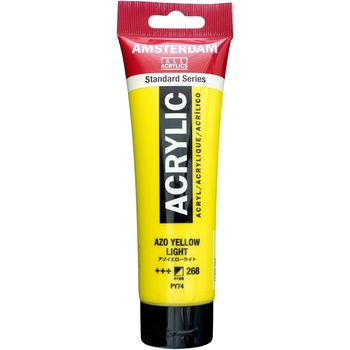 Τιμή λίτρου: 25.833 €Blank page Ακρυλικό χρώμα Azo Yellow Light 268 της σειράς Amsterdam All Acrylics Standard Series σε συσκευασία των 120ml. Τα χρώματα Amsterdam Standard Series είναι εξαιρετικής ποιότητας ακρυλικά χρώματα με την εγγύηση της Ολλανδικής Royal Talens. Φτιαγμένα με υψηλής ποιότητας, ανθεκτικές στο φως χρωστικές, εχουν βαθμολογία αντοχής στο φως +++ (100+ χρόνια υπό συνθήκες μουσείου). Η σειρά Standard σας προσφέρει μία ευρεία γκάμα από εξαιρετικά ζωντανά αδιαφανή ακρυλικά χρώματα, εύκολα στη χρήση, τα οποία προσφέρουν ομαλή εφαρμογή. Χρησιμοποιήστε το χρώμα απευθείας από το σωλήνα ή αραιωμένο με λίγο νερό ή ένα από τα διαλυτικά για ακρυλικά χρώματα. Είναι κατασκευασμένα με 100% συνδετικό ακρυλικής ρητίνης, με αποτέλεσμα μια εξαιρετικά ανθεκτική και εύκαμπτη μεμβράνη βαφής με ομοιόμορφο βαθμό γυαλάδας. Άοσμη φόρμουλα με βάση το νερό η οποία γίνεται αδιάβροχη και με μέγάλη αντοχή όταν στεγνώσει. Προσκολλάται σχεδόν σε οποιαδήποτε ελαφρώς πορώδη επιφάνεια, συμπεριλαμβανομένου καμβά, χαρτιού, χαρτονιού, ξύλου, πέτρας και τσιμέντου.