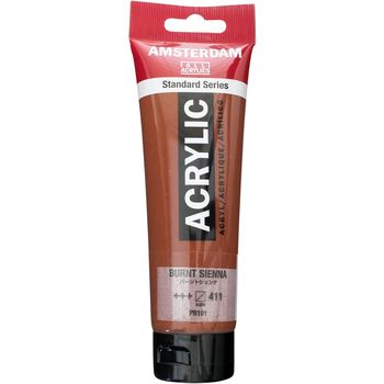 Τιμή λίτρου: 39 €Blank page Ακρυλικό χρώμα Burnt Sienna 411 της σειράς Amsterdam All Acrylics Standard Series σε συσκευασία των 120ml. Τα χρώματα Amsterdam Standard Series είναι εξαιρετικής ποιότητας ακρυλικά χρώματα με την εγγύηση της Ολλανδικής Royal Talens. Φτιαγμένα με υψηλής ποιότητας, ανθεκτικές στο φως χρωστικές, εχουν βαθμολογία αντοχής στο φως +++ (100+ χρόνια υπό συνθήκες μουσείου). Η σειρά Standard σας προσφέρει μία ευρεία γκάμα από εξαιρετικά ζωντανά αδιαφανή ακρυλικά χρώματα, εύκολα στη χρήση, τα οποία προσφέρουν ομαλή εφαρμογή. Χρησιμοποιήστε το χρώμα απευθείας από το σωλήνα ή αραιωμένο με λίγο νερό ή ένα από τα διαλυτικά για ακρυλικά χρώματα. Είναι κατασκευασμένα με 100% συνδετικό ακρυλικής ρητίνης, με αποτέλεσμα μια εξαιρετικά ανθεκτική και εύκαμπτη μεμβράνη βαφής με ομοιόμορφο βαθμό γυαλάδας. Άοσμη φόρμουλα με βάση το νερό η οποία γίνεται αδιάβροχη και με μέγάλη αντοχή όταν στεγνώσει. Προσκολλάται σχεδόν σε οποιαδήποτε ελαφρώς πορώδη επιφάνεια, συμπεριλαμβανομένου καμβά, χαρτιού, χαρτονιού, ξύλου, πέτρας και τσιμέντου.