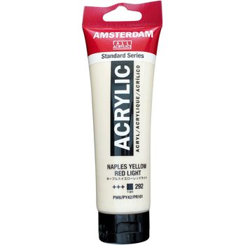 Τιμή λίτρου: 25.833 €Blank page Ακρυλικό χρώμα Naples Yellow Red Light 292 της σειράς Amsterdam All Acrylics Standard Series σε συσκευασία των 120ml. Τα χρώματα Amsterdam Standard Series είναι εξαιρετικής ποιότητας ακρυλικά χρώματα με την εγγύηση της Ολλανδικής Royal Talens. Φτιαγμένα με υψηλής ποιότητας, ανθεκτικές στο φως χρωστικές, εχουν βαθμολογία αντοχής στο φως +++ (100+ χρόνια υπό συνθήκες μουσείου). Η σειρά Standard σας προσφέρει μία ευρεία γκάμα από εξαιρετικά ζωντανά αδιαφανή ακρυλικά χρώματα, εύκολα στη χρήση, τα οποία προσφέρουν ομαλή εφαρμογή. Χρησιμοποιήστε το χρώμα απευθείας από το σωλήνα ή αραιωμένο με λίγο νερό ή ένα από τα διαλυτικά για ακρυλικά χρώματα. Είναι κατασκευασμένα με 100% συνδετικό ακρυλικής ρητίνης, με αποτέλεσμα μια εξαιρετικά ανθεκτική και εύκαμπτη μεμβράνη βαφής με ομοιόμορφο βαθμό γυαλάδας. Άοσμη φόρμουλα με βάση το νερό η οποία γίνεται αδιάβροχη και με μέγάλη αντοχή όταν στεγνώσει. Προσκολλάται σχεδόν σε οποιαδήποτε ελαφρώς πορώδη επιφάνεια, συμπεριλαμβανομένου καμβά, χαρτιού, χαρτονιού, ξύλου, πέτρας και τσιμέντου.
